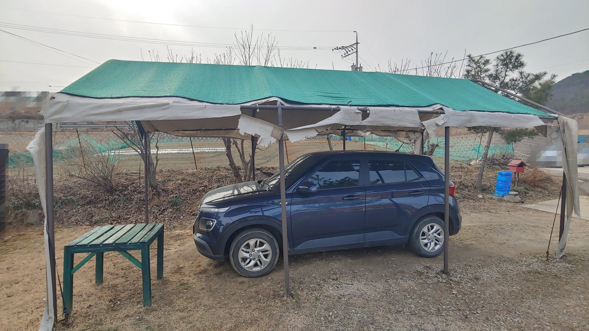 사용한 지 벌써 6년이 지나 7년째인 2024년 3월, 처참한 현재의 모습입니다. (벽면을 둘러싸는 천이 있지만 지금은 지붕커버만 씌우고 사용 중)