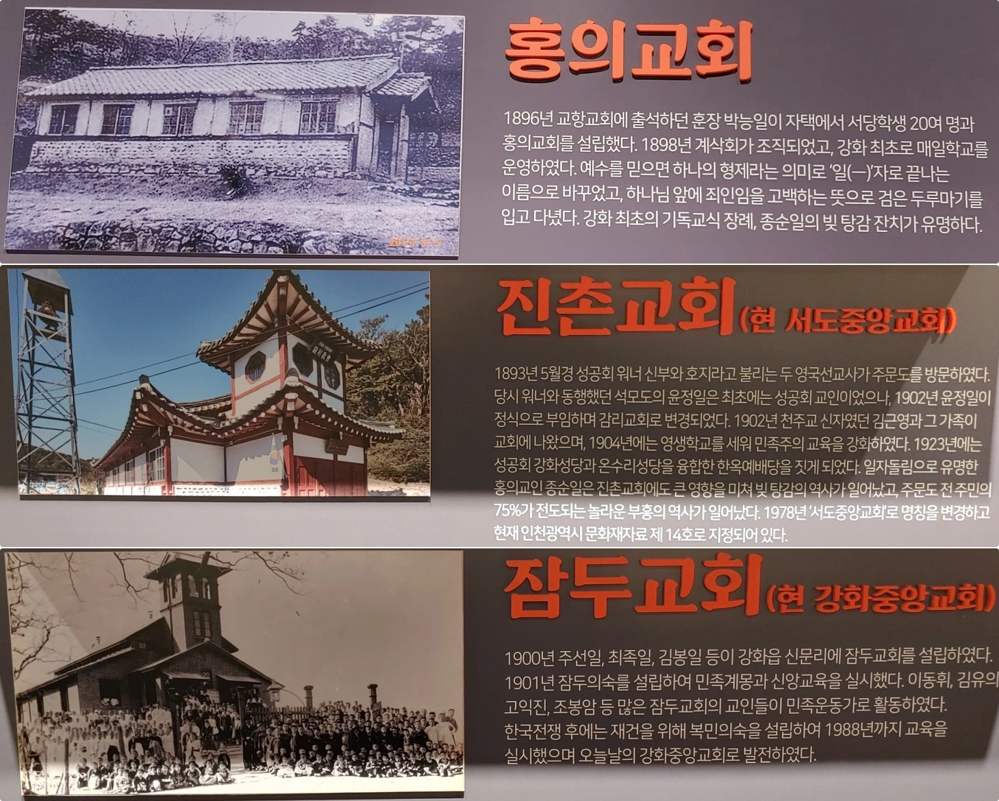 이후 성공회는 통제영학당 교관인 코웰 대위와 커티스 부관이 살던 동문 안 관사를 구입하고 이전하여 선교본부를 구성하고 교세를 확장해 갔다. 감리교는 시루미 이승훈 가족과 초시 김상임이 개종하면서 자신의 집에 첫 감리교회인 교항(현 강화교산)교회를 설립하고, 이어 두 번째 교회인 홍의교회를 통해 고부, 건평, 흥천교회가 생겼으며 삼산면, 교동면, 서도면으로 복음이 확장되었다. 1900년에 잠두(현 강화중앙)교회가 강화읍에 설립되고, 잠두교회 성도 이동휘 권사를 중심으로 마을마다 학교를 세워 민족운동과 육영사업을 시작했다.