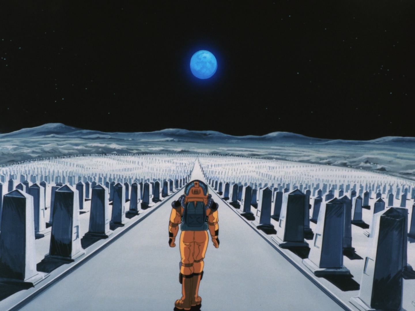 지구를 갈 수도 볼 수도 없는, 지구인으로부터 식민지배 당하고 있는 달 개척민들이 벌이는 지구인으로부터의 독립전쟁을 다룬 SF장르의 작품으로, 지구의 자원고갈로 지구인들을 위한 자원을 생산하기 위해 착취당하는 식민지 노동자들의 처참함과 그 고생 끝에 죽음이 오더라도 가고보 싶은 염원의 표현인 듯, 지구행성이 보이는 방향으로 월면에 늘어선 끝도 안 보이는 광활한 묘지의 장면이 매우 인상적이며 작가의 이런 상상력에 감탄마저 든다.