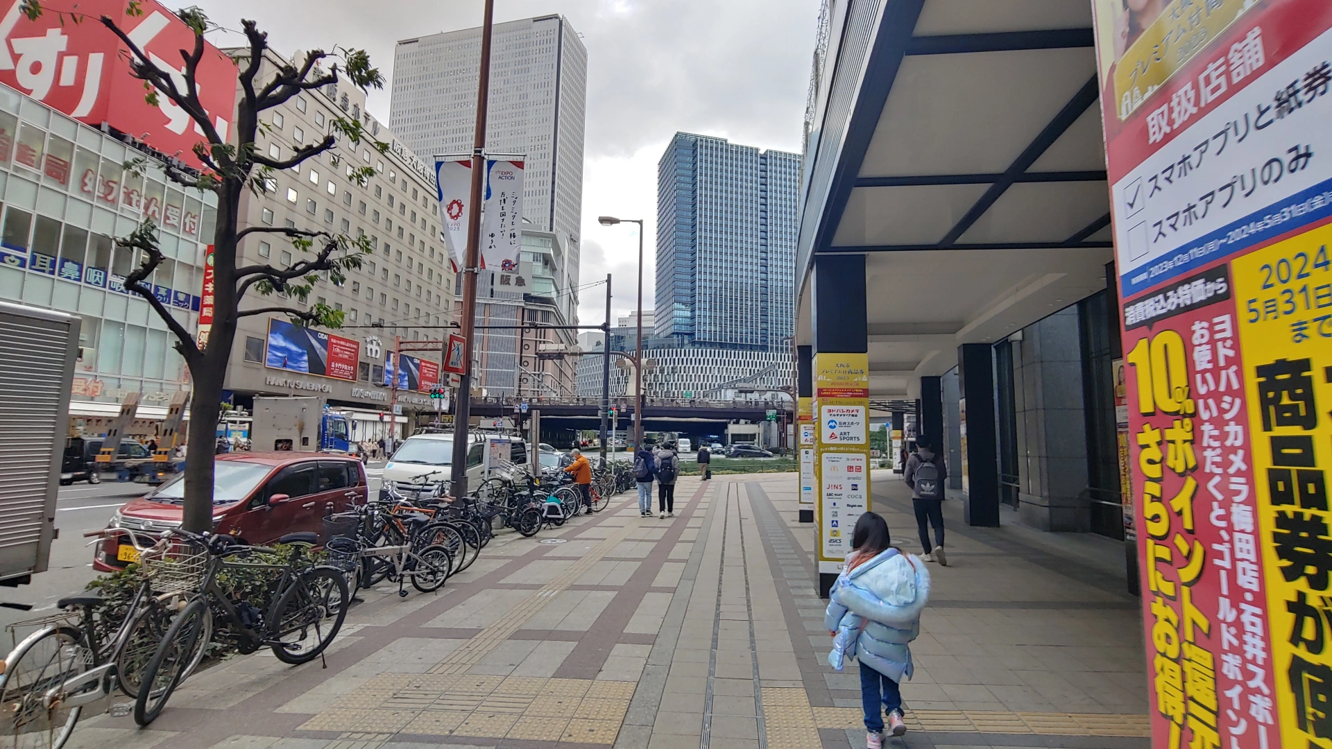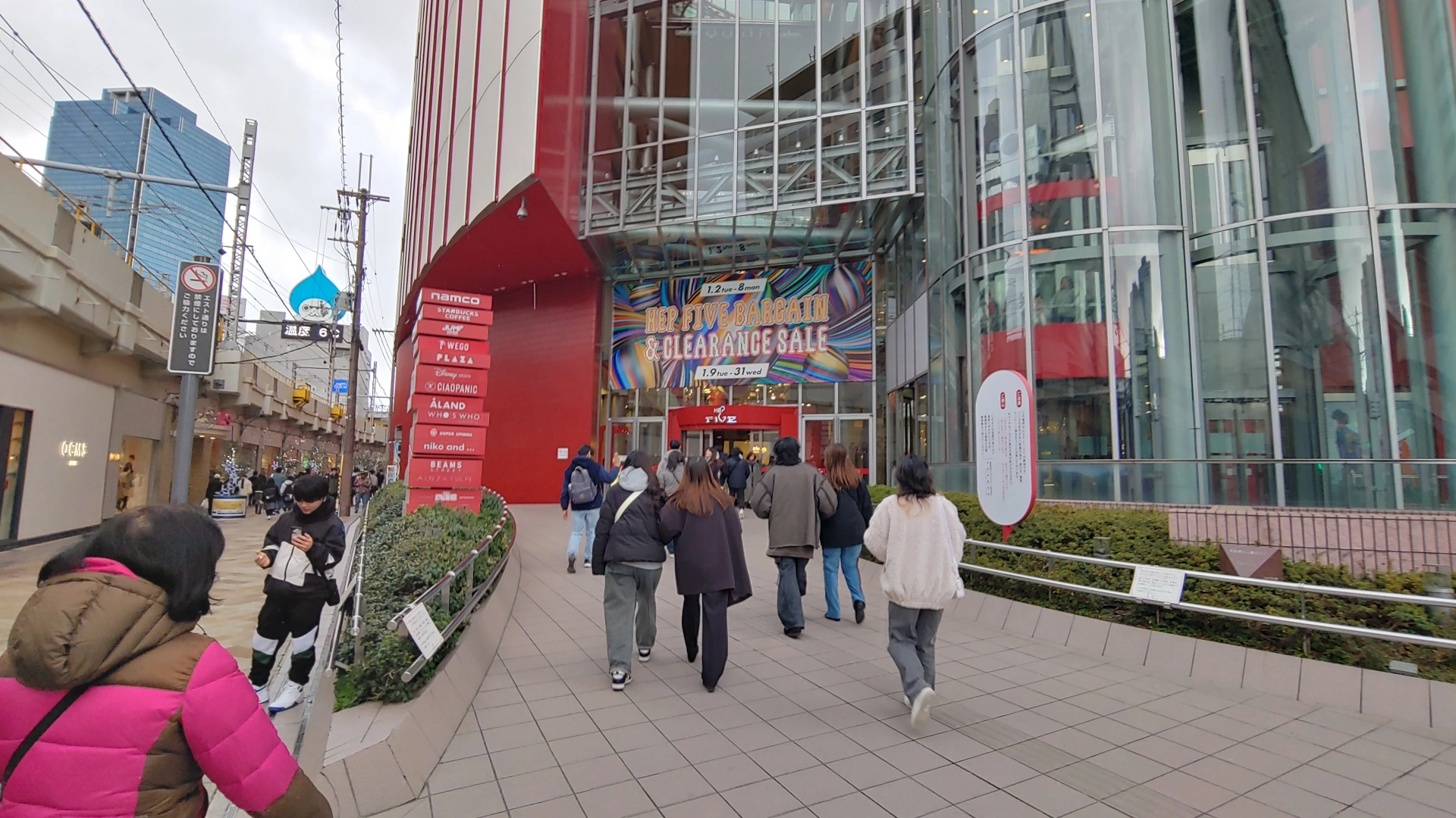 옆의 노란 간판의 상점은 일본에서 유명한 할인잡화 체인 돈키호테입니다.