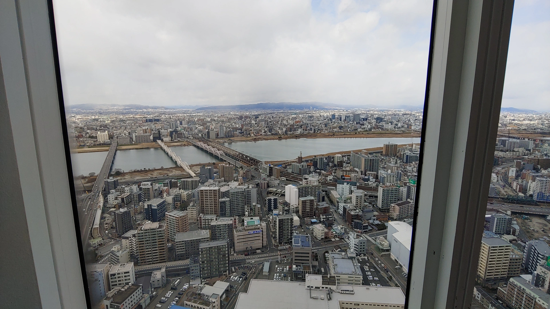 오사카의 시가지와 바다로 이어지는 하천의 풍경을 한눈에 볼 수 있습니다.