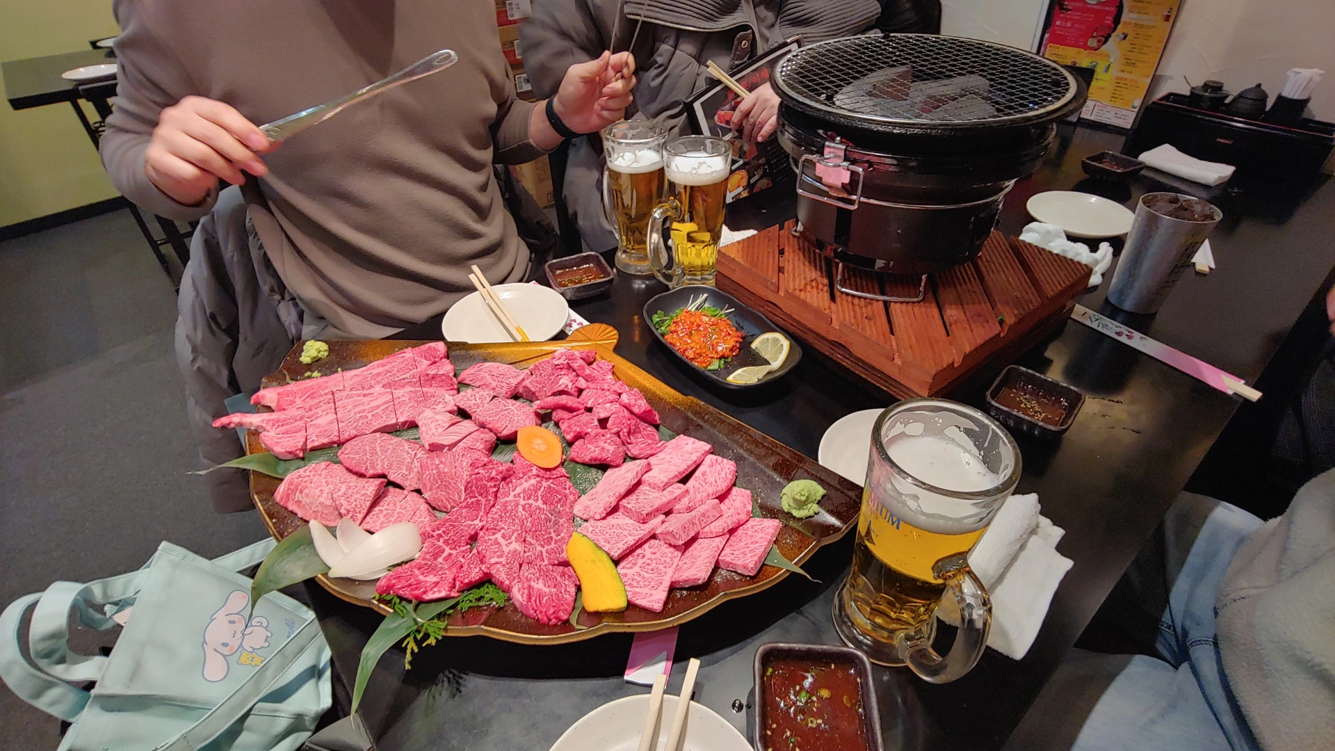 주변의 야키니쿠 식당에서 먹게 됐는데, 와우! 다행히 정말 맛있더군요.