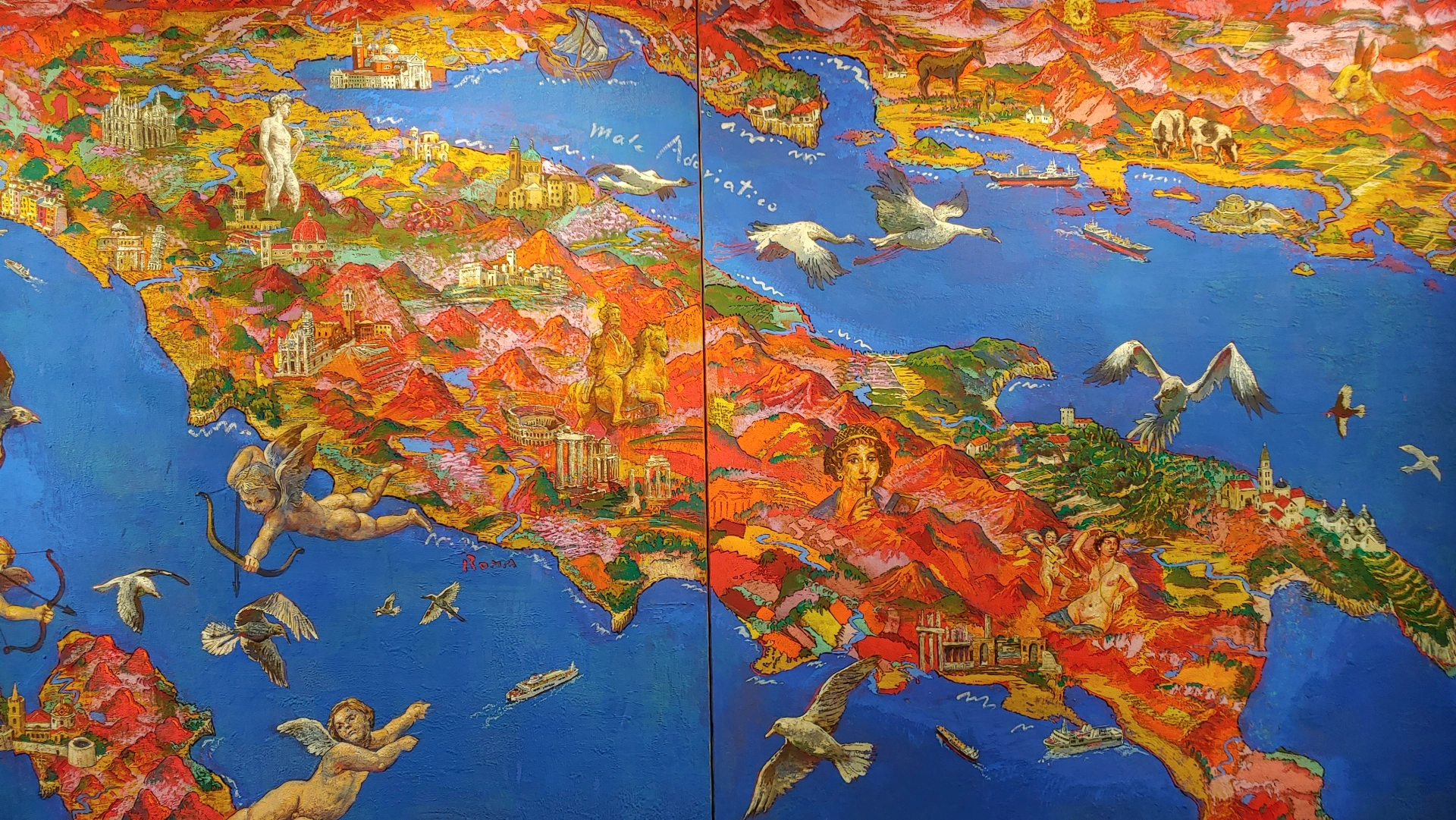 색채가 매우 강렬하며, 세계의 다양한 미술양식이 뒤섞인 것 같으면서도
