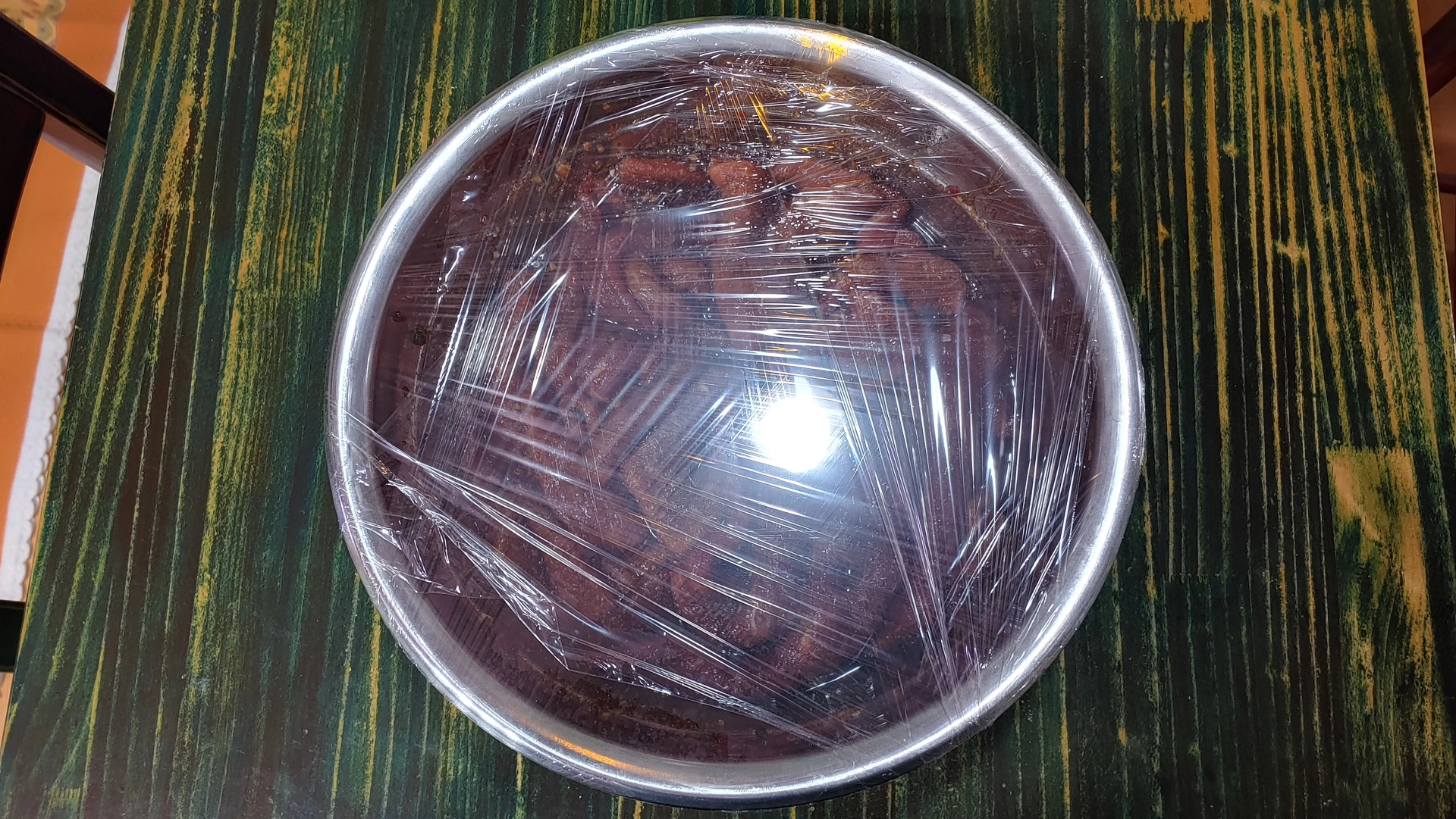 해진 저녘에 재어두고, 다음 날 아침에 되서 냉장고에서 꺼냈습니다.