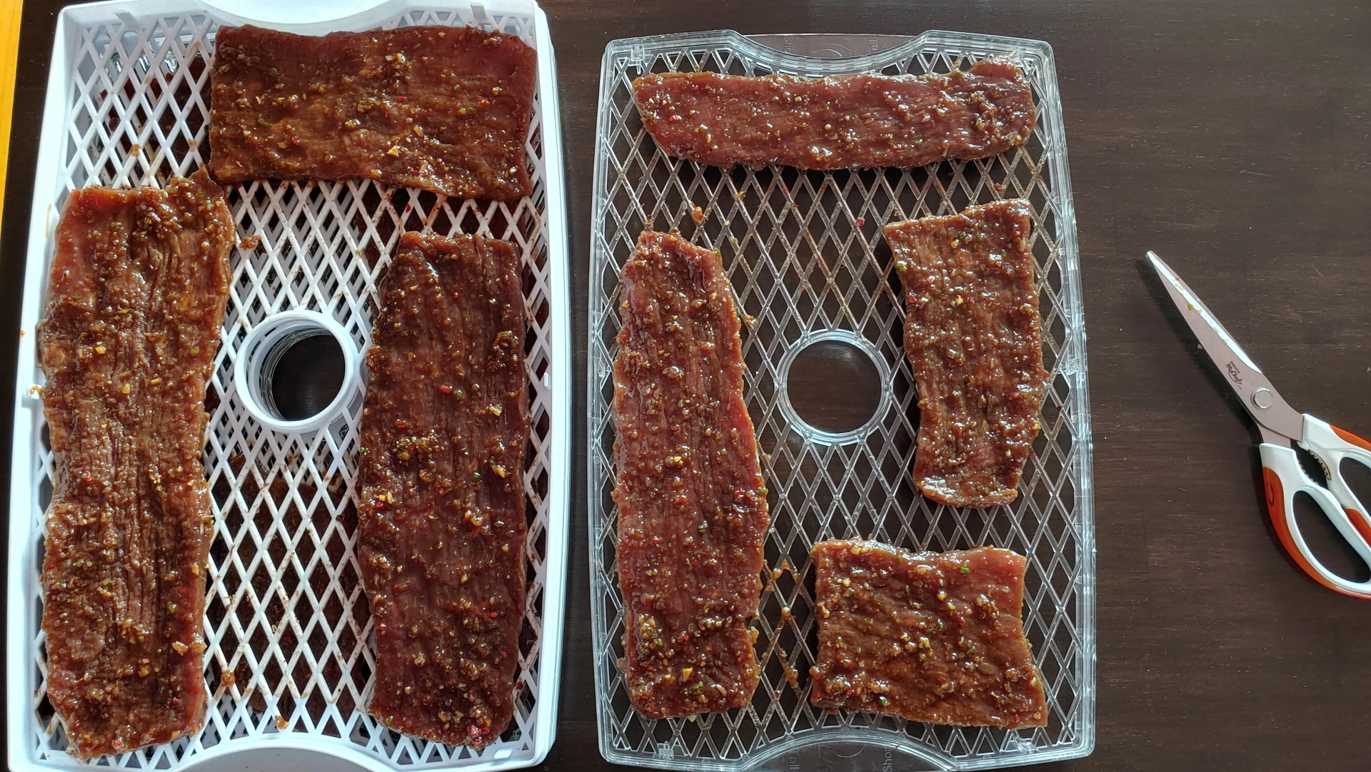 필요하면 건조대 사이즈에 맞게 고기를 가위로 잘라서 맞춰줍니다.