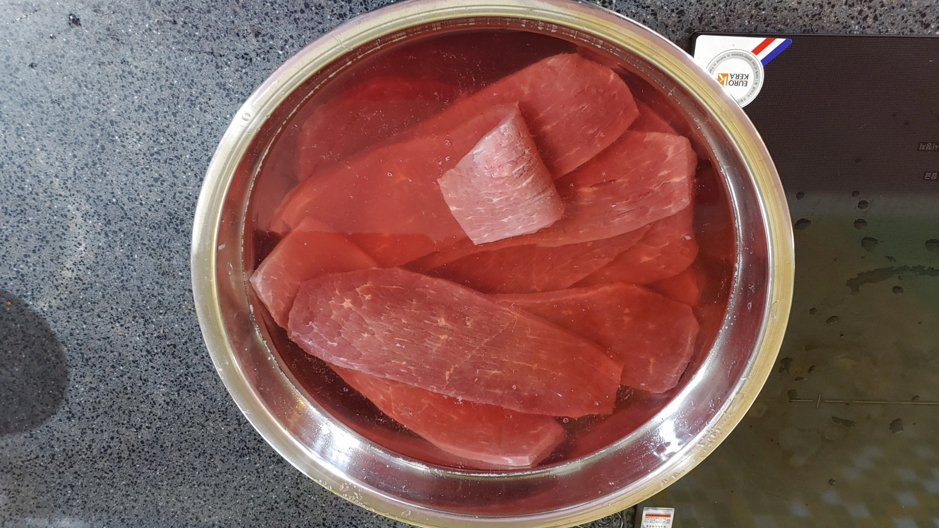 핏물이 많이 나오면 중간중간 새 물로 교체해 줍니다.